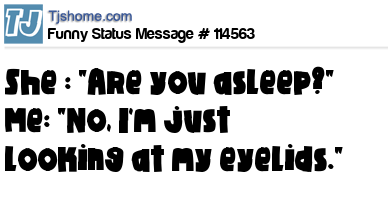 X is She : "Are you asleep?" Me: "No, I'm just looking at my eyelids."