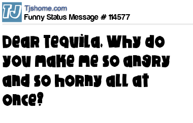 X says Dear Tequila, Why do you make me so angry and so horny all at once?