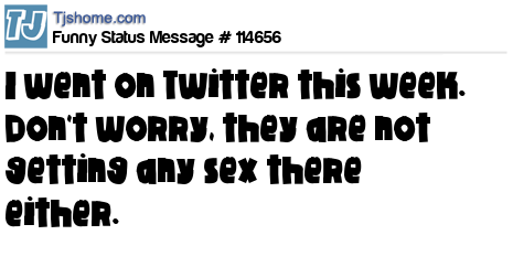 X says I went on Twitter this week. Don't worry, they are not getting any sex there either.
