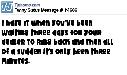 X says I hate it when you've been waiting three days for your dealer to ring back and then all of a sudden it's only been three minutes.