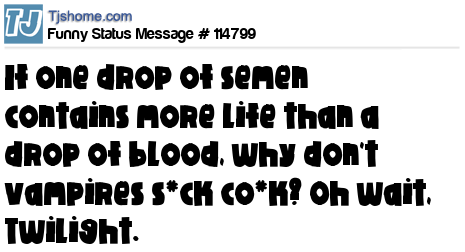 X is If one drop of semen contains more life than a drop of blood, why don't vampires s*ck co*k? Oh wait, Twilight.