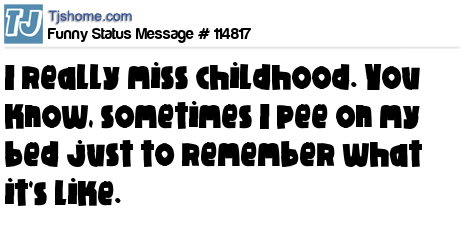 X says I really miss childhood. You know, sometimes I pee on my bed just to remember what it's like.