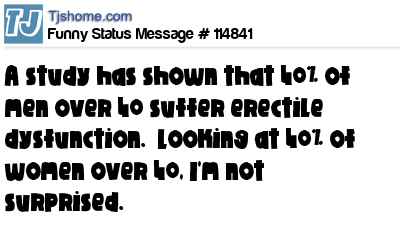 X A study has shown that 40% of men over 40 suffer erectile dysfunction. Looking at 40% of women over 40, I'm not surprised.