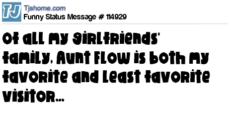 X says Of all my girlfriends' family, Aunt Flow is both my favorite and least favorite visitor…