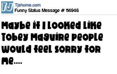 X Maybe if I looked like Tobey Maguire people would feel sorry for me....