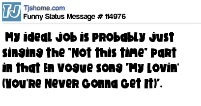 X says My ideal job is probably just singing the "Not this time" part in that En Vogue song "My Lovin' (You're Never Gonna Get It)".
