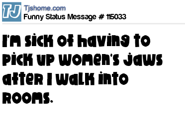X I'm sick of having to pick up women's jaws after I walk into rooms.