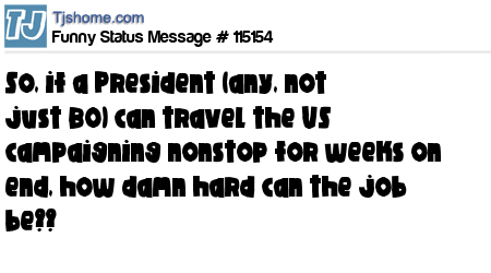 X says So, if a President (any, not just BO) can travel the US campaigning nonstop for weeks on end, how damn hard can the job be??