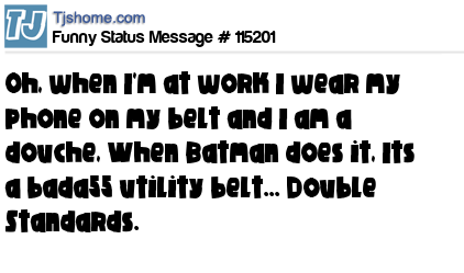 X is Oh, when I'm at work I wear my phone on my belt and I am a douche, When Batman does it, Its a bada55 utility belt... Double Standards.