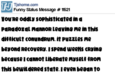 X you're oddly sophisticated in a paradoxal mannor leaving me in this difficult conundrum. it puzzles me beyond recovery. I spend weeks crying because I cannot liberate myself from this bewildered state. I even began to think that my dog was a large gerbil.