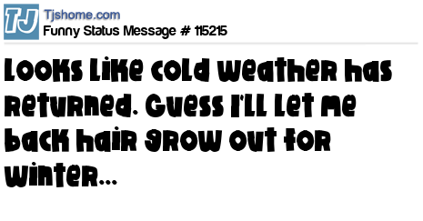 X says Looks like cold weather has returned. Guess I'll let me back hair grow out for winter...