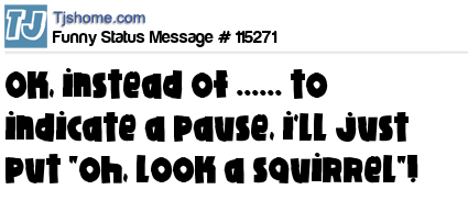 X is ok, instead of ...... to indicate a pause, i'll just put "oh, look a squirrel"!