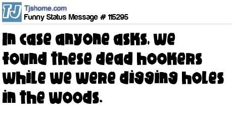 X says In case anyone asks, we found these dead hookers while we were digging holes in the woods.