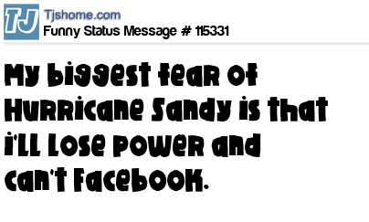 X My biggest fear of Hurricane Sandy is that i'll lose power and can't Facebook.