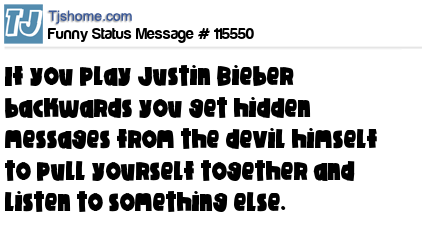 - # 157972 If you listen to a Justin Bieber song backwards you'll hear messages from the devil. Even worse if you play it forward you'll hear Justin Bieber.