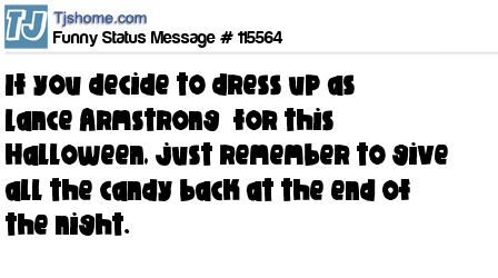 X If you decide to dress up as Lance Armstrong for this Halloween, just remember to give all the candy back at the end of the night.