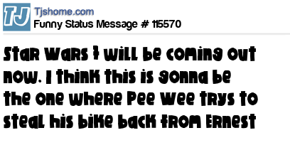 X is Star Wars 7 will be coming out now. I think this is gonna be the one where Pee Wee trys to steal his bike back from Ernest