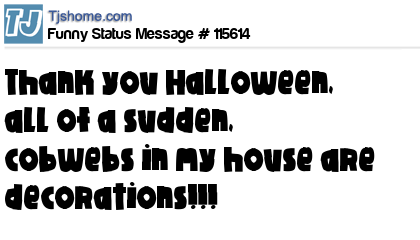 - # 209154 It's finally October! Which means all of the cobwebs and dust in my house just became Halloween decorations.
