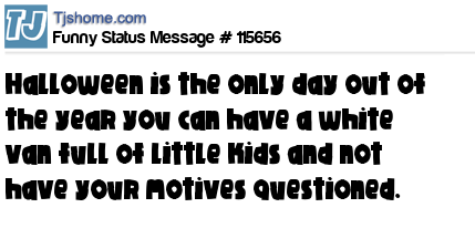 X is Halloween is the only day out of the year you can have a white van full of little kids and not have your motives questioned.