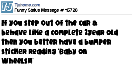 X is If you step out of the car & behave like a complete 2year old then you better have a bumper sticker reading 'Baby on Wheels!!'