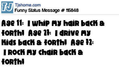 X is Age 11: “I whip my hair back & forth!” Age 27: “I drive my kids back & forth!” Age 72: “I rock my chair back & forth!”