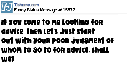 - # 91437 When people ask me for advice, I tell them, “Use your best judgment,” which they clearly don't have if they are asking me for advice.