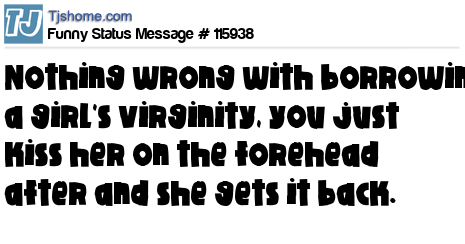 X says Nothing wrong with borrowing a girl's virginity, you just kiss her on the forehead after and she gets it back.