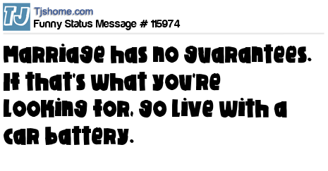 X Marriage has no guarantees. If that's what you're looking for, go live with a car battery.