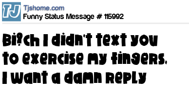 - # 76113 I didn't text you to exercise my fingers, I want a damn reply.