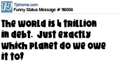 - # 141892 The Economist has calculated that the world is 52 trillion dollars in debt. Who on earth does the world owe? Jupiter?!!