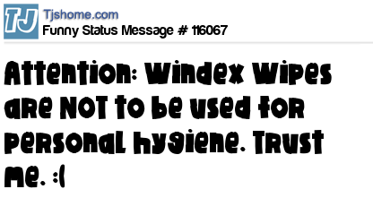 X Attention: Windex Wipes are NOT to be used for personal hygiene. Trust me. :(