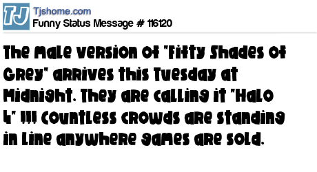 X The male version of "Fifty Shades of Grey" arrives this Tuesday at Midnight. They are calling it "Halo 4" !!! Countless crowds are standing in line anywhere games are sold.