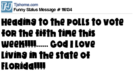 X is Heading to the polls to vote for the fifth time this week!!!!...... God I love living in the state of Florida!!!!