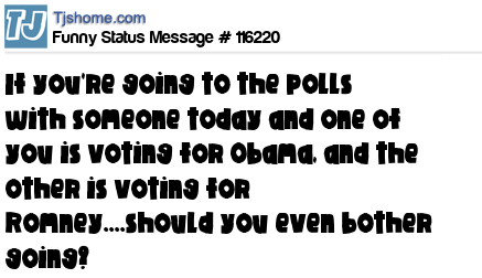 X is If you're going to the polls with someone today and one of you is voting for Obama, and the other is voting for Romney....should you even bother going?