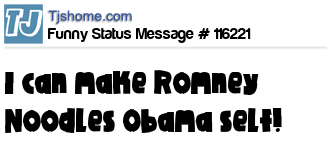 - # 114464 until Obama or Romney can name every flavor of ramen noodles I dont wanna hear s h!t about how they can relate to me and the struggle.