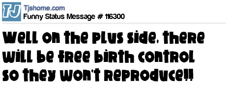 X  Well on the plus side, there will be free birth control so they won't reproduce!!