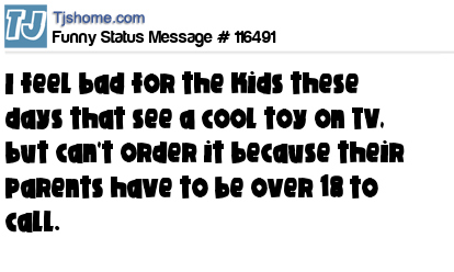 - # 101983 I feel bad for kids nowadays that see a cool new toy on tv that they want, but have no way of getting, because their parents have to be 18 or older to call.