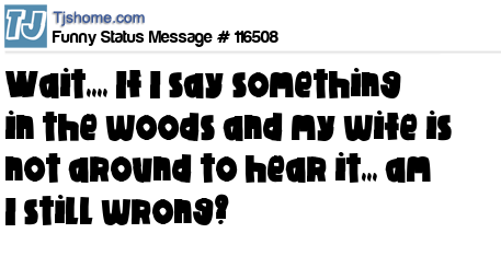 - # 73610 If a man says something in the woods and there is no woman there to hear him.... is he still wrong?!