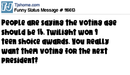 X is People are saying the voting age should be 16. Twilight won 9 teen shoice awards. You really want them voting for the next president?