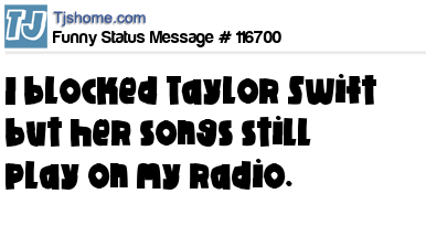 - # 113396 I hope Taylor Swift gets her period soon and starts writing songs everyone over 9 will like…