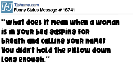 X ""What does it mean when a woman is in your bed gasping for breath and calling your name? You didn't hold the pillow down long enough.""
