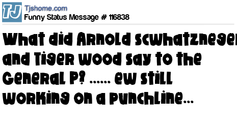 X What did Arnold scwhatzneger and Tiger wood say to the General P? ...... ew still working on a punchline...
