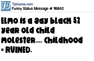 X  Elmo is a gay black 52 year old child molester.... Childhood = RUINED.