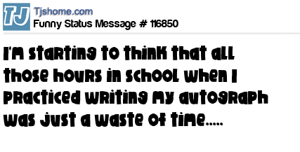 X says I'm starting to think that all those hours in school when I practiced writing my autograph was just a waste of time.....