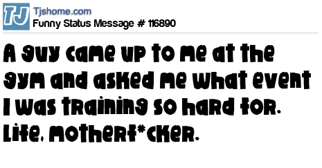 X A guy came up to me at the gym and asked me what event I was training so hard for. Life, motherf*cker.