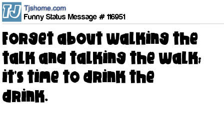 - # 111614 I really cant walk the walk or talk the talk. But if you need someone to drink the drink, I am your girl.