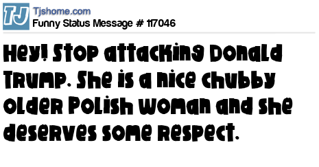 X Hey! Stop attacking Donald Trump. She is a nice chubby older Polish woman and she deserves some respect.
