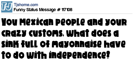 X You Mexican people and your crazy customs, what does a sink full of mayonnaise have to do with independence?