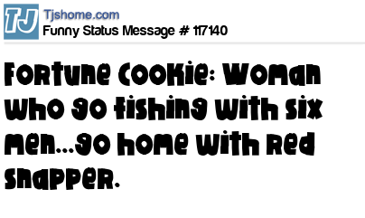 X Fortune Cookie: Woman who go fishing with six men...go home with red snapper.