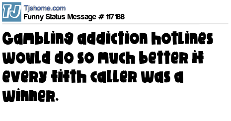 - # 80992 I bet more people would call the Gambling Addicts Helpline if they made every 5th caller a winner.
